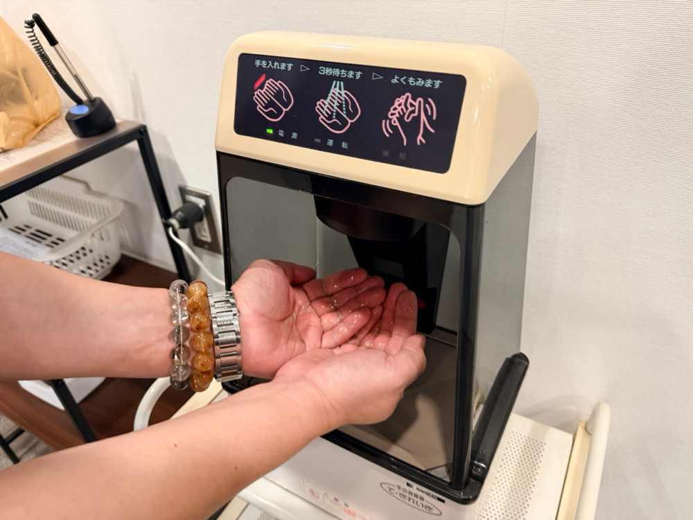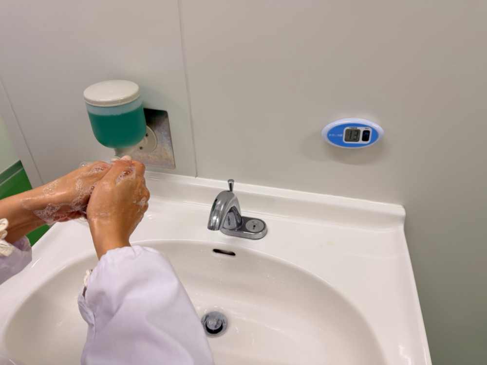 當人員沾取洗手液後,將雙手靠近計時器上的感應裝置,計時器則會開始計時,