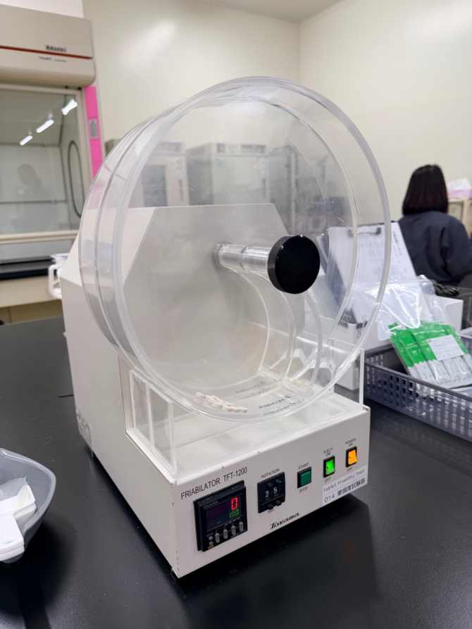 主要用於品質控制,目的在於測試錠劑的物理強度和抗磨損能力,