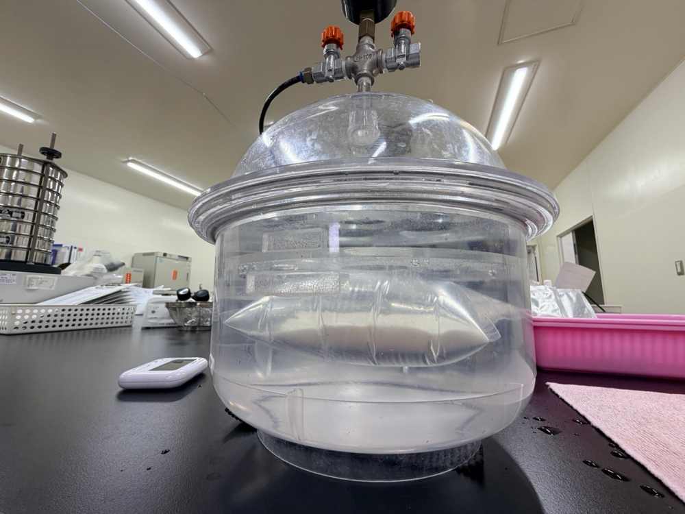 如果產品包裝(軟袋)有微小的針孔或密封不良,袋內空氣會因壓力差而膨脹,並從洩漏點冒出氣泡。