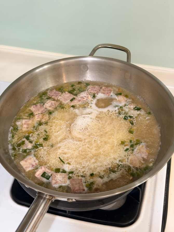 調理包分門別類,直接加熱,最後湯滾再下米粉就可以。